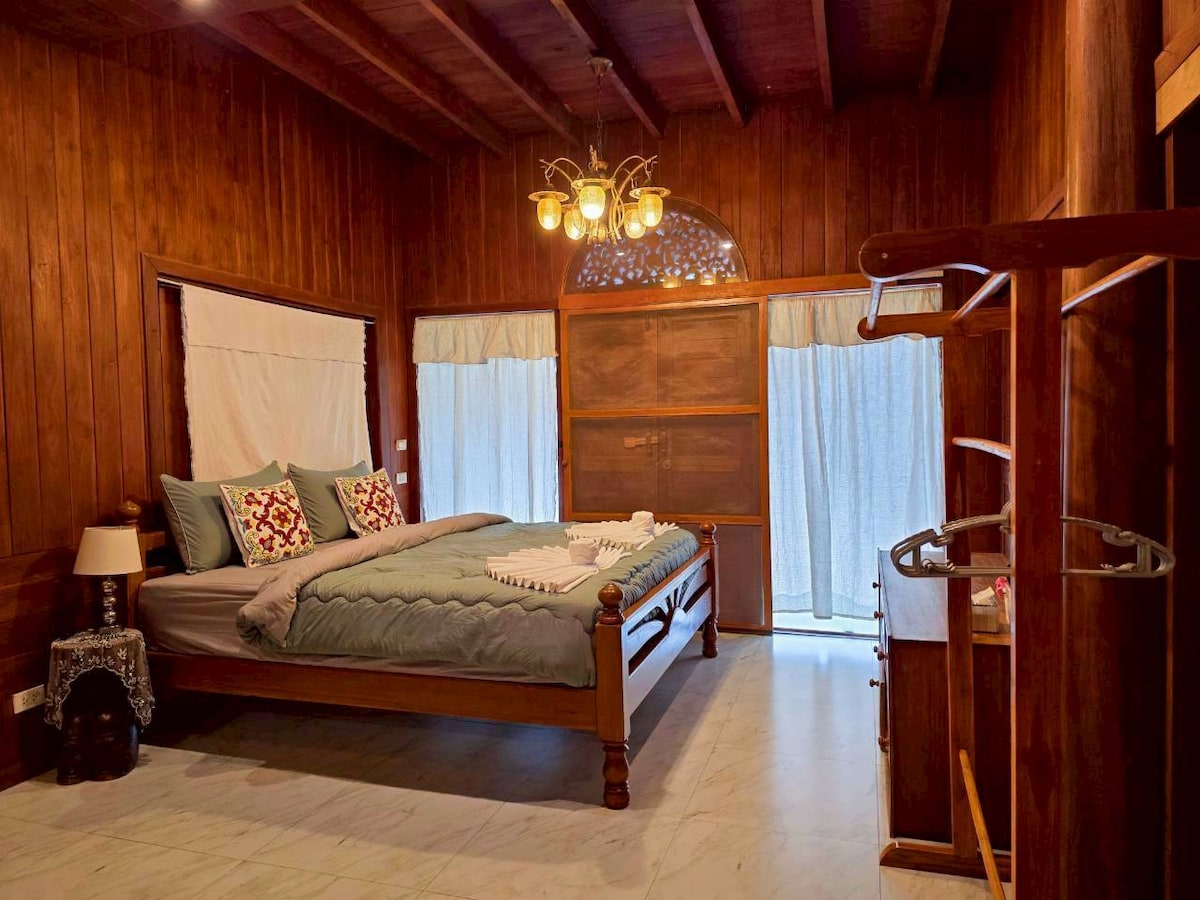 这栋充满活力的热带别墅位于清迈的黄金地段,WangTan 小区重叠机场商圈非常适合大型团体和与家人或朋友聚会。别墅配备各种设施,包括大型游泳池、按摩浴缸.可供您全方位娱乐。我们的户外可看私人湖泊的美景,地理位置优越,可轻松前往市区,靠近便利店和超级市场。我们还应要求提供餐饮和交通服务,费用由房客自行承担。 房源介绍 这是一栋现代风格的2层别墅,屋顶可欣赏私人湖泊,还有一个带按摩浴缸的大泳池。 *5间卧室*6个卫生间 *宽敞的公共区域 *配备电器的西式厨房*每个房间配备智能电视*一次性洗漱用品*茶水工作台*大型环绕式泳池露台 这栋别墅最多可容纳10人,设施齐全,让每个人都能玩得开心。优雅与安静的心灵放松之地.这里是家庭度假、商务团体和大型朋友团体的理想之选。5间卧室和6个卫生间确保所有房客的隐私。室内光线充足,与木制家具融为一体,营造出温馨舒适的环境。 公共区域通往泳池露台,露台宽敞,是一个不错的聚会场所。游泳池是一个超大泳池,大小适合成人和儿童入住。大门是遥控的,房源周围的墙壁建造得很高,以确保我们的房客拥有极致的隐私。 别墅外部是森林景观避免不了蚊虫. 提前告知. 不喜勿定