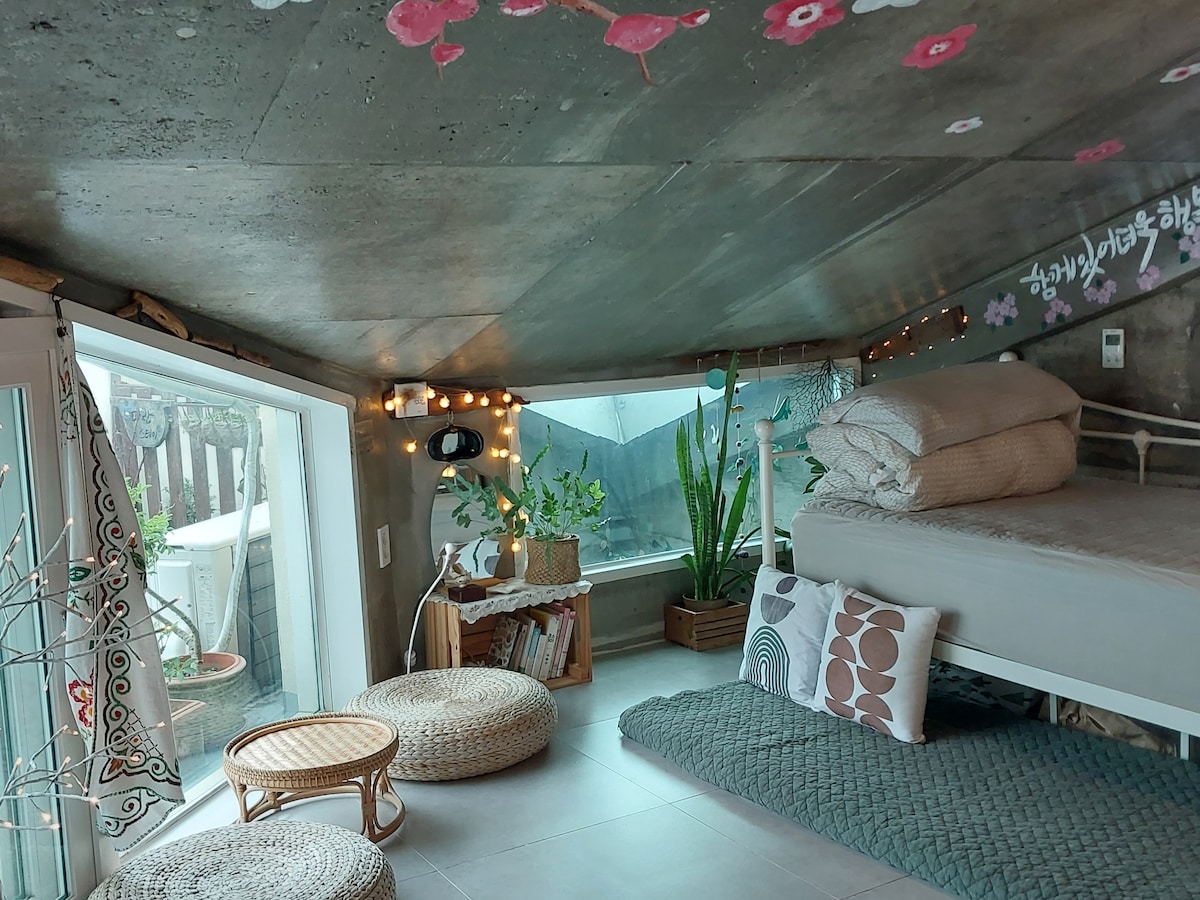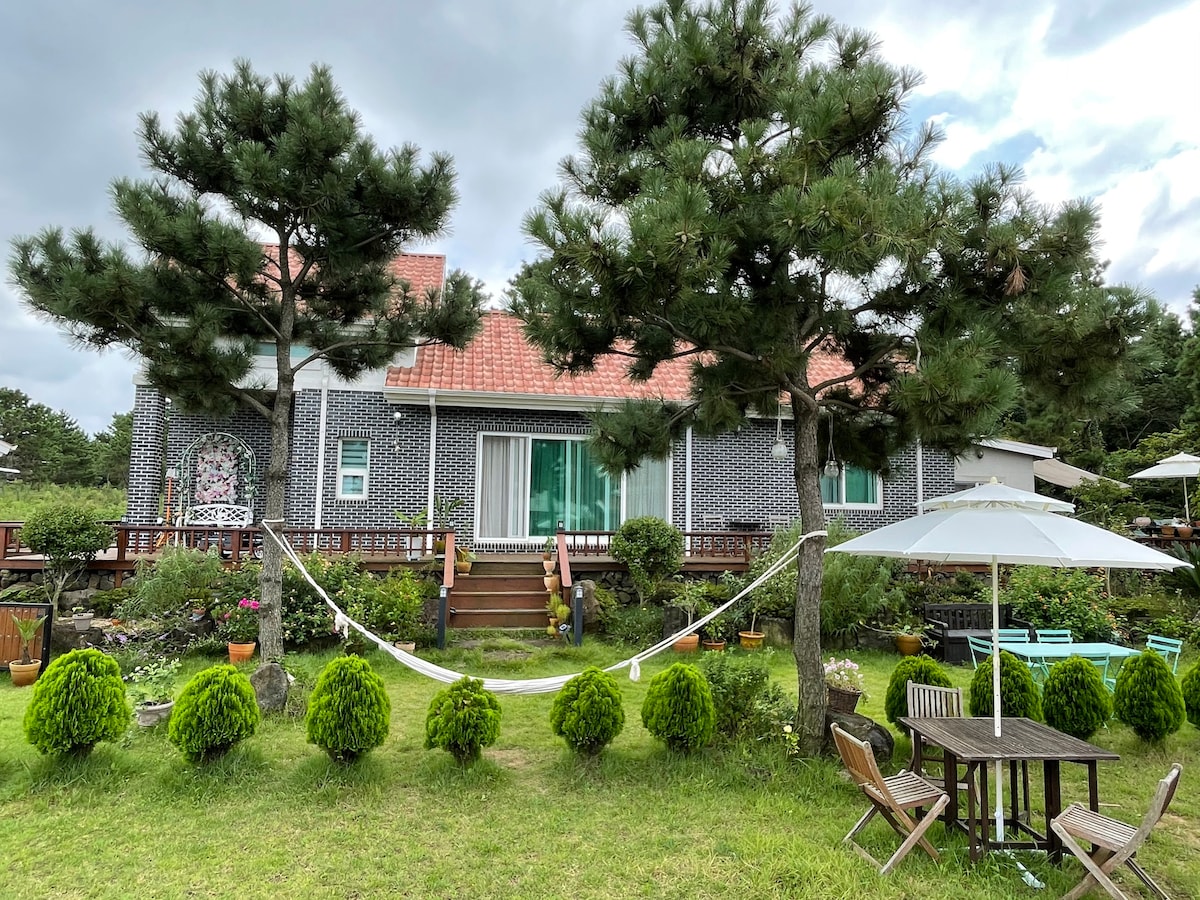 Experience the slow life of Jeju at 'Pongnang Shade'. Located near Gonae Port in Aewol, our private 2-story villa features a massive 130-pyeong grass garden and ocean views. • Private Space: Entire house for one group (4 Bedrooms, 3 Bathrooms, 1 Living Room). • Dining: Large 10-person table & BBQ terrace, perfect for groups. • Best For: Large family trips, workshops, or getaways with friends. Walk to Olle Trails (Courses 15 & 16) and enjoy undisturbed rest in your own private sanctuary.