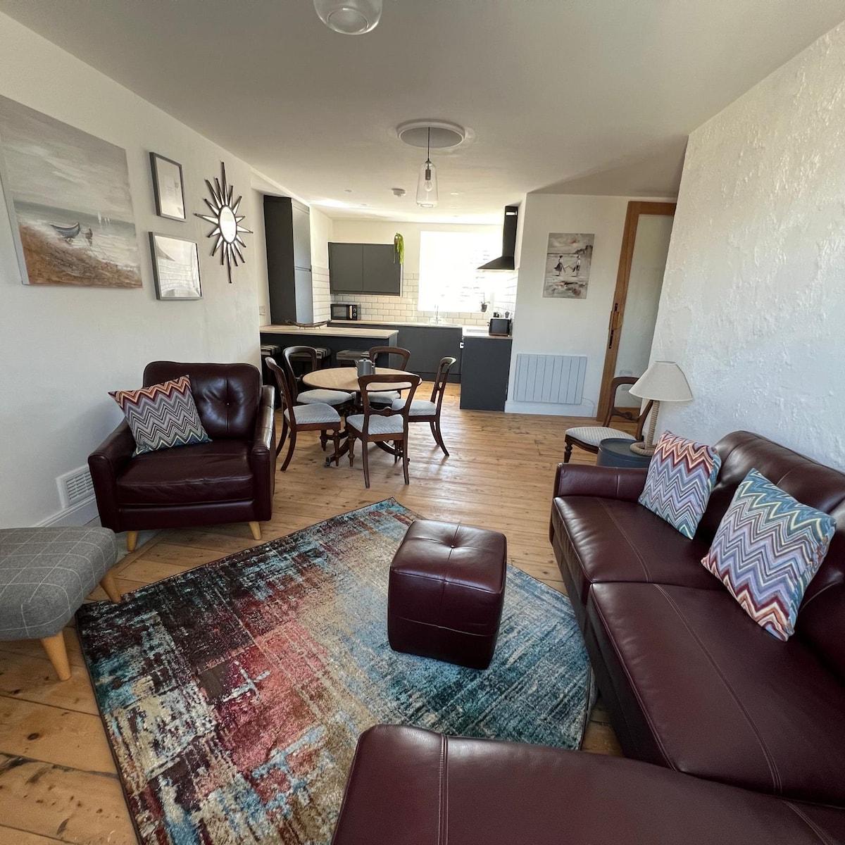 Þessi nýuppgerða nútímalega íbúð er við göngustíginn með mögnuðu útsýni yfir Morecambe-flóa og gegnt hinu táknræna Art Deco Midland-hóteli. Í þessari nýuppgerðu, nútímalegu íbúð er nýr fullbúinn matsölustaður með 6 sæta eyju og hátæknilegum, sambyggðum tækjum. Stofan er við hliðina á matsölustaðnum með tveimur yfirstærðum sófum og 65" Samsung snjallsjónvarpi og hljóðstöng. Sofðu rótt í king size rúmum í hótelgæðum með nægu plássi í fataskápum. Auk þess er annar sjónvarpsstofa, sólstofa og stór þakverönd.