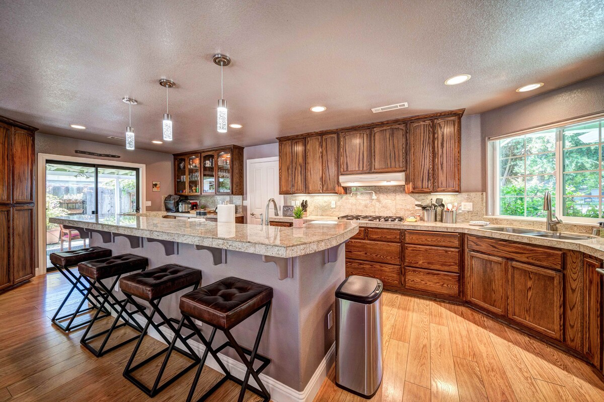 Redding er hliðið að frábærri útivist í Norður-Kaliforníu og Jardin Pasatiempo er lykillinn að því að gera heimsókn þína þægilega dvöl. Húsið er rúmlega 2.000 fermetrar að stærð og er bjart með útsýni yfir garðinn. sælkeraeldhús og verslanir í nágrenninu auðvelda þér að búa til uppáhaldsmatinn þinn. Finndu einveru á földum, hljóðlátum garðstað. Eða nýttu þér setustofupallinn, eldborðið eða borðstofuna utandyra.