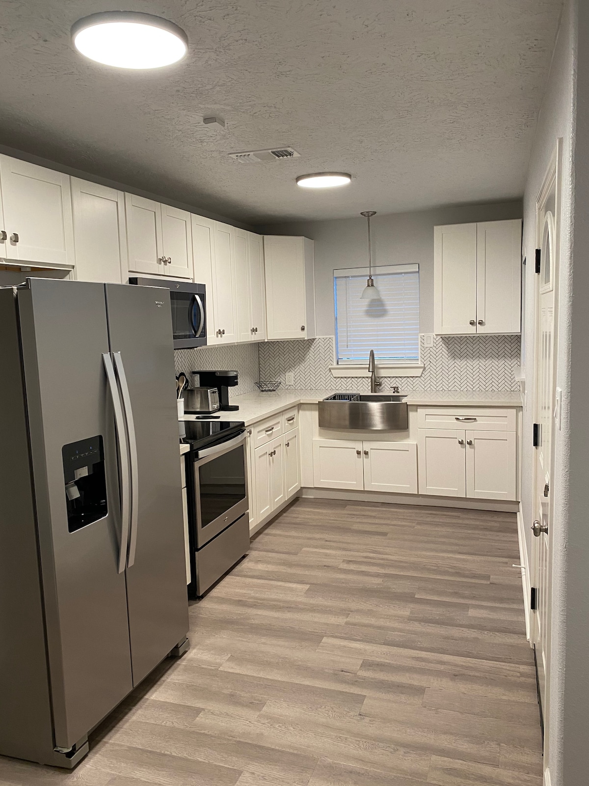 Eignin okkar er einstaklega notaleg og sæt með nægu plássi og þægindum, þar á meðal ókeypis bílastæðum við götuna rétt fyrir utan eignina! Þetta er afgirt, nútímaleg og björt einkasvíta fyrir gesti með fullbúnu sérbaðherbergi og eldhúskrók í innan við 10 mínútna akstursfjarlægð frá Texas Medical Center! Svítan er 15 sekúndur að næsta þjóðvegi (hwy 288) til að komast hratt hvar sem er. Fiber Internet Wifi, Roku TV, new Ecobee Thermostat in room Örugg sjálfsinnritun Hárþurrka, kaffivél, lítill ísskápur og örbylgjuofn