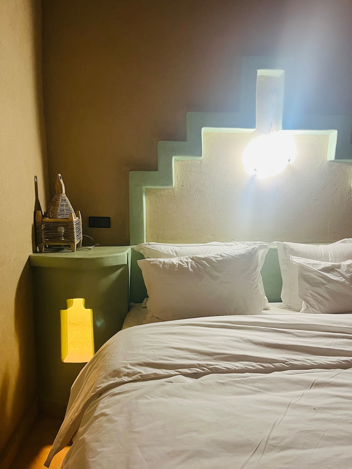 Lúxusíbúð í hjarta Merzouga – þægindi og glæsileiki eyðimerkurinnar Verið velkomin í glæsilega afdrepið ykkar í miðbæ Merzouga. Lúxusíbúðin okkar sameinar nútímalegan þægindi og ekta eyðimerkursjarma og býður upp á fullkominn miðpunkt til að skoða stórkostlegar sandöldur Erg Chebbi. Íbúðin er fullbúin og hönnuð á ígrundaðan hátt til að skapa afslappandi og fágað andrúmsloft. Hún er með þægilegum svefnherbergjum, bjartri stofu, einkabaðherbergi og öllum nauðsynjum.