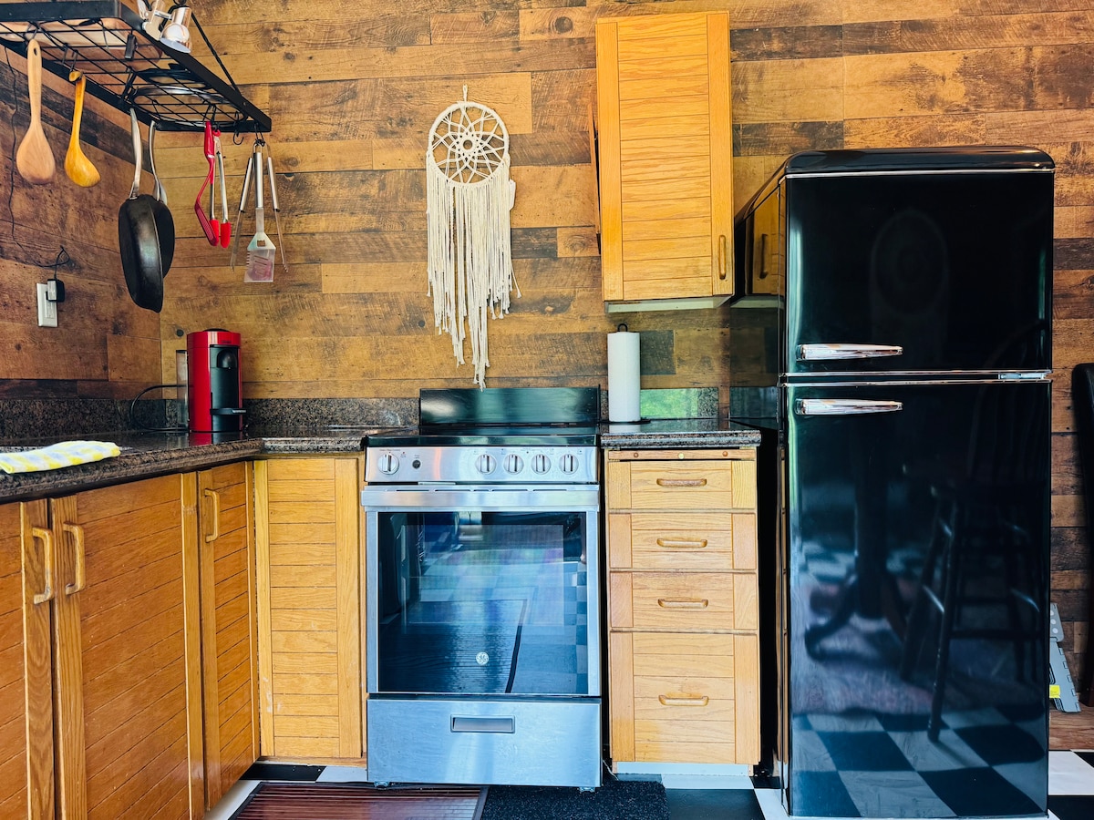 Stórkostlegur timburkofi með 2 svefnherbergjum og fullbúnum innréttingum