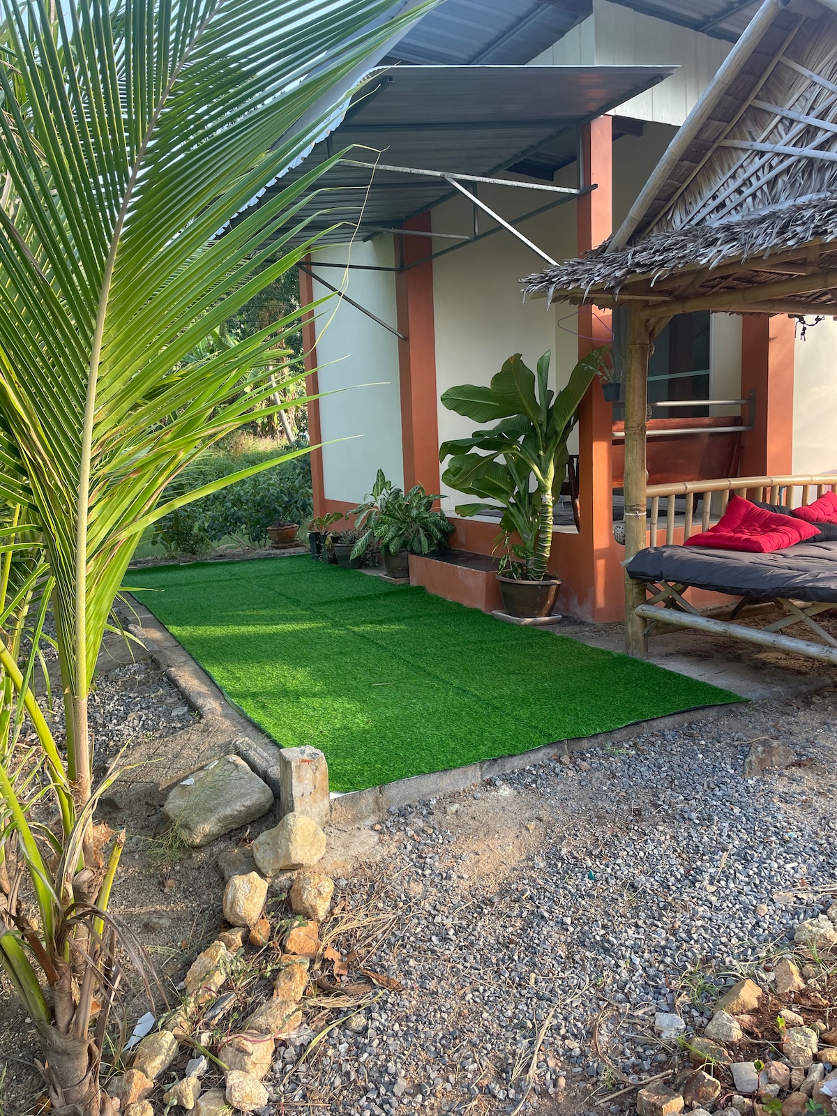 Suan Residence er rétti staðurinn fyrir fólk sem elskar náttúruna og vill slaka á. Ströndin og miðborgin eru í waling fjarlægð (~7 mínútur). Hvert lítið íbúðarhús er til einkanota svo að þú getir notið gæðastunda með því sem þú elskar. Þú vaknar með fuglasönginn og tekur morgunkaffið þitt umkringt fjöllum og kókoshnetutrjám. Á kvöldin getur þú horft á magnað sólsetur úr sundlauginni þinni. Þetta er vistvænt verkefni. Við ákváðum nei til að setja loftræstingu en einangrun í staðinn til að draga úr hitanum.