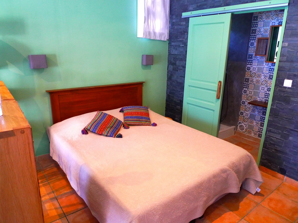 Í hjarta eignarinnar okkar er 35 m2 stúdíó með verönd og einkabílastæði. Stóra svefnfyrirkomulagið, eldhúsið, stofan og litríka sturtusvæðið mun draga þig á tálar. Laug miðað við opnunartíma. Diskur dagsins eftir bókun. Te og kaffi í boði.