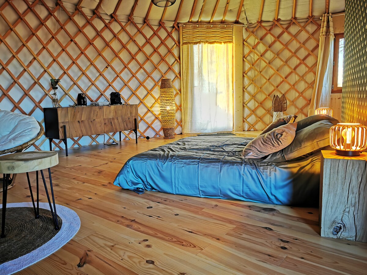 Njóttu heillandi umhverfis þessarar rómantísku gistingar í hjarta náttúrunnar. Í hreinni mongólskri hefð, einn eða með öðrum, skaltu bjóða þér frí í fótspor hirðingjaþjóðanna. Í vistfræðilegri nálgun, Côté sanitaires, er boðið upp á þurrsalerni í rými í nágrenninu ásamt baðherbergi með sturtu og vaski. Slökunarsvæði með heitum potti og sundlaug í miðri náttúrunni Morgunverður gegn aukakostnaði