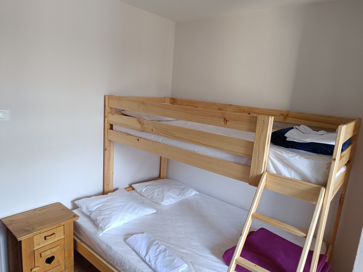 Hjónaherbergi með tríórúmi fyrir vini eða par. Staðsett við rætur skíðasvæðisins Les 2 Alpes (9 mínútur) og paradís fyrir göngu- og náttúruíþróttaáhugafólk (Parc des Ecrins) Gistingin nýtur góðs af vaski. Þú ert með sturtur og salerni á ganginum fyrir framan herbergið. Þú getur borðað á staðnum á veitingastað farfuglaheimilisins og kælt þig á barnum.