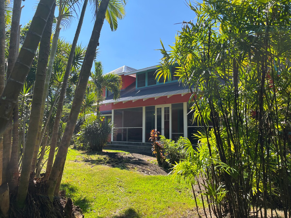 Heilagt rými fyrir einn einstakling til að setjast að og endurheimta. The BANANA PATCH COTTAGE is enclosed by screen & located in a grove of banana trees, surrounded by a forest of guava, avocado & mango trees. Hlustaðu á vindana, rigninguna dansa á túnþakinu, fossandi laufin og krybburnar. Háhraða þráðlaust net ($ 40 fyrir mán. langa dvöl), sameiginlegt eldhús og baðherbergi. 15% afsláttur fyrir 2 vikur. 30% afsláttur fyrir 1 mánuð. Deepen & Settle. Sacred.