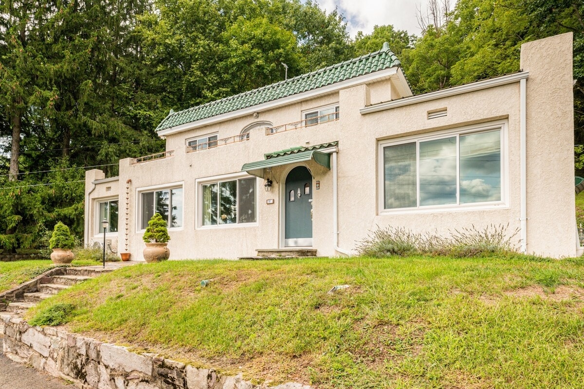 Unwind at this unique 1940s Italian-inspired retreat, set on 8 private acres and built by a first-generation local jeweler who dreamed of owning his own Italian Villa. Explore hidden architectural gems. Relax, have fun, and enjoy nature. Guests can soak in the hot tub, unwind by the patio fireplace or outdoor fire pit, and visit friendly chickens with fresh eggs.Conveniently near Interstates 80 & 81, golf courses, state parks and hiking, wineries and craft breweries, dining, and shopping.
