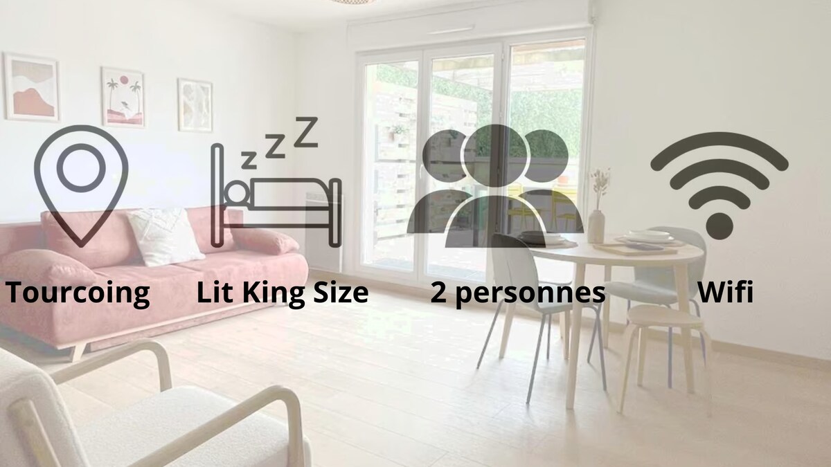 ⸻ Björt og uppgerð stúdíóíbúð, fullkomin fyrir vinnu- eða ferðalög í Lille. Tvær stórar útsýnisgluggar opnast út á notalega verönd. Gæðarúmföt, búið eldhús, Nespresso-kaffivél, baðherbergi/bað, sjónvarp og þráðlaust net. Örugg bílastæði eru í boði við gististaðinn. Miðbær Lille er í 8 mínútna akstursfjarlægð og þaðan er fljótur aðgangur að helstu vegum. Það er einnig mjög vel tengt með sporvagni, 2 mínútna göngufjarlægð. Monoprix-matvöruverslun í 600 metra fjarlægð, opin til kl. 21:00.