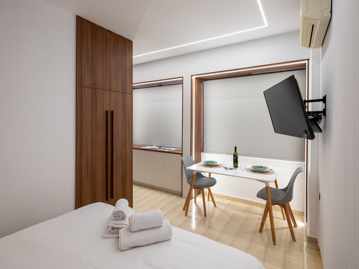 Kynnstu töfrum Heraklion með því að gista í eigninni okkar! Njóttu þæginda nútímalegrar íbúðar í líflegu hverfi sem er fullt af hefðbundnum krám og kaffihúsum. Hvert horn eignarinnar veitir þér afslöppun og hlýju, allt frá þægilegu hjónarúmi til fullbúins eldhúss. Með þjónustu okkar og greiðum aðgangi að kennileitum verður upplifunin ógleymanleg í miðborginni!
