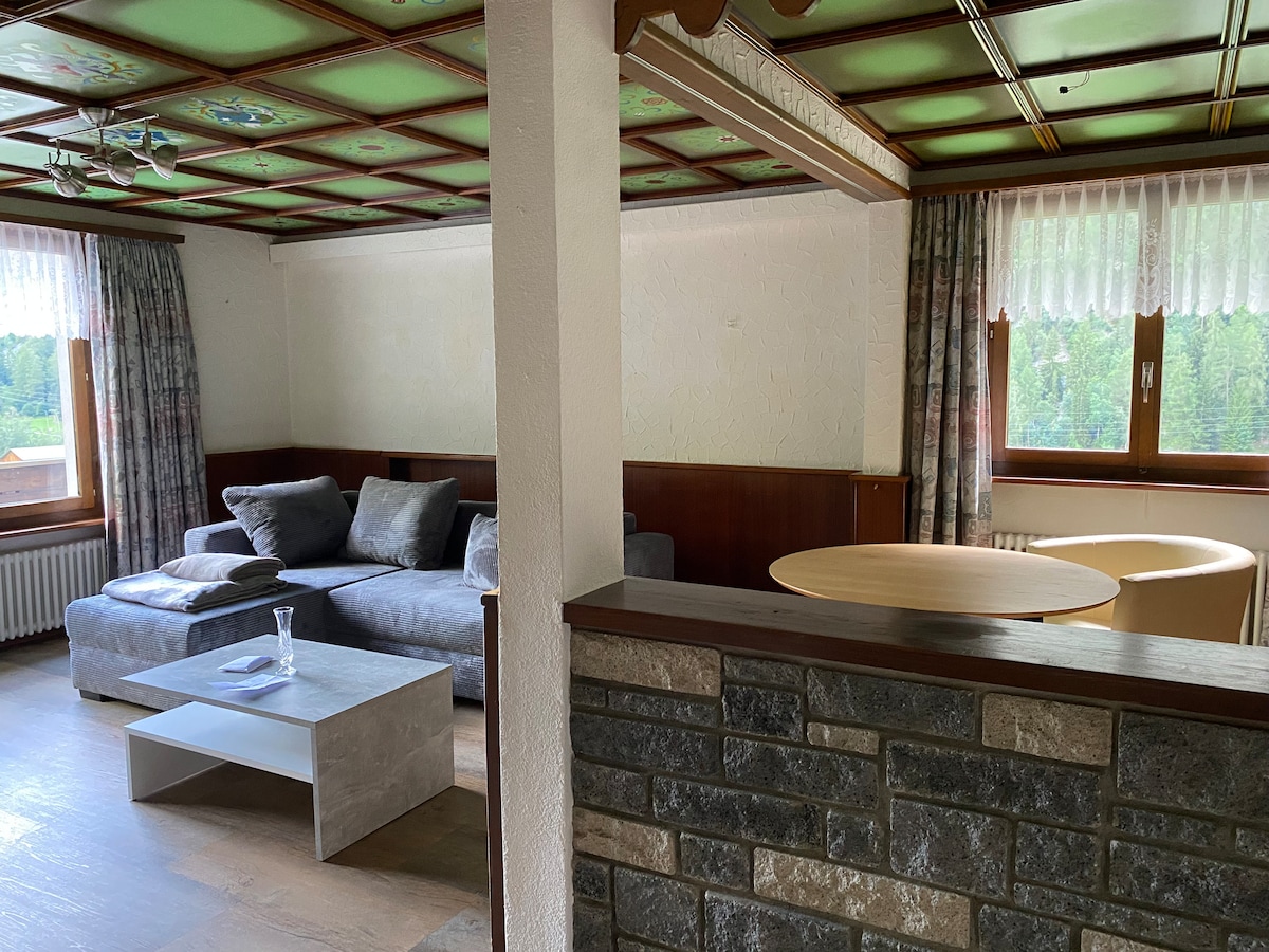 Haus Thor er staðsett á rólegu svæði í Tasch, í göngufæri frá stöðinni. Staðsett á hlið dalsins fyrir ofan þorpið, sem snýr í suður og býður upp á frábært útsýni með miklu náttúrulegu sólarljósi Íbúðin á jarðhæð er með 1 stórt svefnherbergi, fullbúið eldhús með uppþvottavél, örbylgjuofn. Stór stofa með borðstofuborði og stórum sófa. Með ókeypis einkabílastæði og ókeypis netaðgangi er lítið annað en að njóta svæðisins og frábært útsýni!