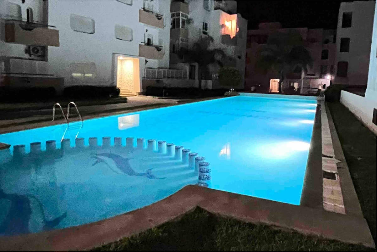 Velkomin heim – strönd, sundlaug og sól La Perle d'Achakar er ný íbúð sem er staðsett í nútímalegri og rólegri ferðamannaíbúð með tveimur sundlaugum og einkabílastæði. Á milli Herkúlesarhellanna og Cap Spartel, 8 mínútur frá flugvellinum og 9 mínútna göngufjarlægð frá ströndinni. Tilvalið fyrir ferðamenn sem leita að ró, þægindum og afslöppun í skemmtilegum náttúrulegum umhverfum, fjarri erilsömu miðborgarinnar, fullkomið fyrir afslappandi dvöl í friði.