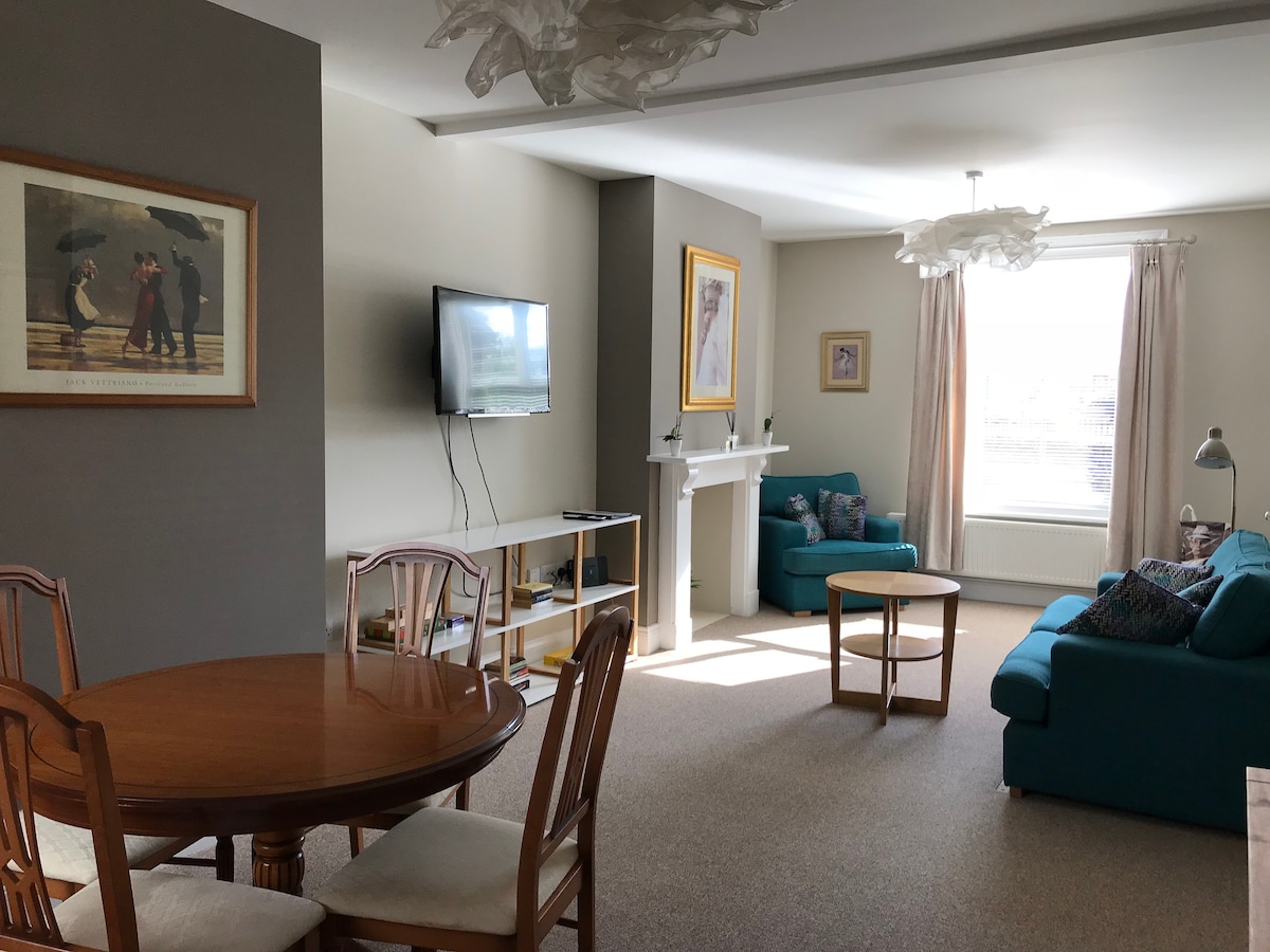 Stór íbúð í yndislegu, rólegu húsi í Játvarðsstíl með framúrskarandi útsýni yfir Hereford-dómkirkjuna og velsku fjöllin. Frábær staður til að skoða sig um eða bara til að slaka á. Á sumarkvöldi geturðu fengið þér drykk á svölunum og á veturna. Íbúðin er ekki tilvalin fyrir mjög seint nætur og er ekki örugg fyrir börn eða gæludýr. Boðið er upp á te, kaffi og morgunverð.