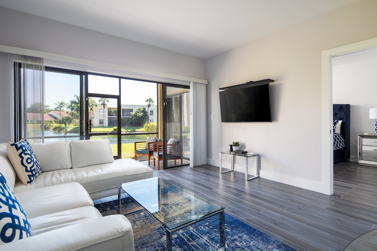 Hvort sem þú ert að leita að fjölskylduvænu eða rólegu, rómantísku fríi erum við þér innan handar! Einingin okkar er í suðurenda samstæðunnar okkar þar sem trillan við fossinn fyrir utan lanai er fullkominn bakgrunnur til að njóta morgunkaffisins eða kannski orlofskokkteils! Einingin okkar er algjörlega endurgerð í uppfærðum strandstíl sem er blanda af klassískum og nútímalegum en einnig lífvænlegum (við eigum tvö ung börn). Fullkominn bakgrunnur fyrir tíma þinn í SW FL!