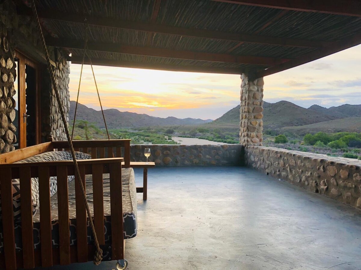 Come make memories at the Ostrich Cottage on our off- the -grid lifestyle farm. This is a unique and secluded place where you can relax, reload and have the best of both worlds. Spend the day at the beach (15 min drive) and an evening around the bonfire or go fishing in the morning and watch zebra's & buffaloes while you sip your wine in the hot tub on your private deck. The cottage is basic, newly renovated and sleeps 2 adults and max 3 children in 2 open rooms. Enjoy this hidden gem!