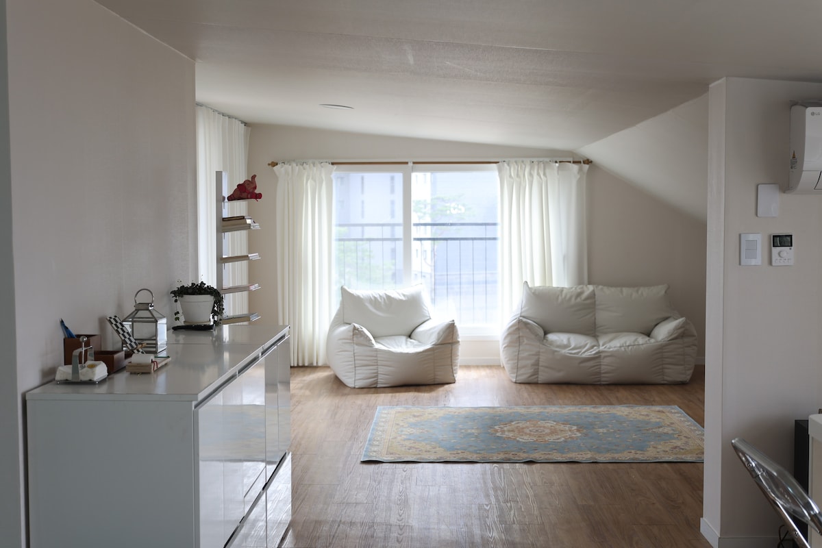 Want privacy AND cute pets? This is the perfect place! You get a fully private studio with your own entrance, kitchen, and bathroom. But just steps away in the main house, our famous "Drama Queen" Dog and "Goofy" Cat are waiting for you! Join the fun when you want, sleep quietly when you need. 🐶 Meet Your Furry Neighbors (In Main House) * Bok-dong-i (Dog): A smart mix and a total "Drama Queen". He loves female guests! * Haeng-sun-i (Cat): A "Dog-like Cat". She is clumsy and goofy.