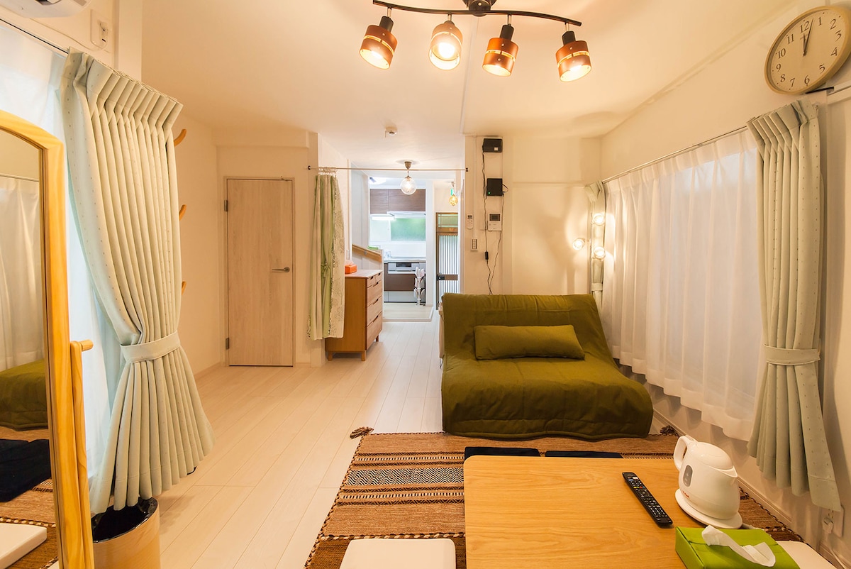 Stór fjölskylduvæn eign: 2BR/Stofa/þráðlaust net/eldhús/baðker/sjónvarp/Zhongyuan Station - Tobu Skytree Line 5 mín ganga