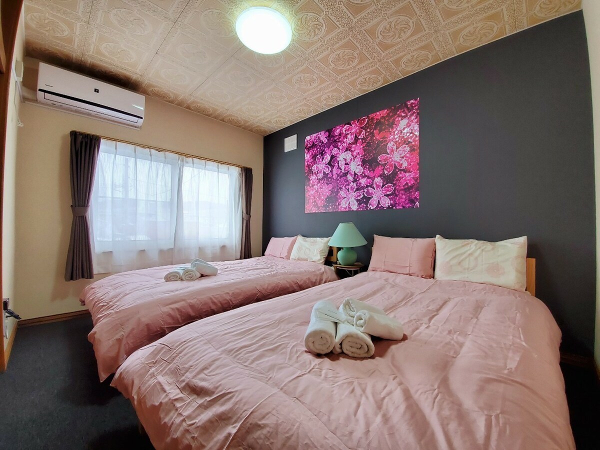 ! Þægilegt miðbæjarsvæði fyrir dvöl þína Gistihús á einni hæð í miðbæ Furano. Góður aðgangur að matvöruverslunum og apótekum, þar á meðal matvöruverslunum á borð við Seven Eleven og McDonald 's.Öll þessi aðstaða er þægilega staðsett í göngufæri og þú getur einnig gengið að litlu ferðamannaverslunarmiðstöðinni (Furano Marche).Í nágrenninu eru einnig kaffihús, barir, ramen-verslanir o.s.frv. ! Tilvalin staðsetning fyrir skoðunarferðir Þægilegt að ferðast til helstu ferðamannastaða. Af hverju ferðu ekki í skoðunarferðir um Furano sem er umkringdur tignarlegri náttúru eins og Furano skíðasvæðinu, verönd, furano-ostabúð, víngerð og Rokugate. Þú getur náð til þessara skoðunarstaða í um 10 mínútna akstursfjarlægð.Á sumrin er Lavender Farm, vinsæll ferðamannastaður, í um 15 mínútna akstursfjarlægð. Það er einnig í um 15 mínútna akstursfjarlægð frá heitri baðaðstöðu í nágrenninu. Hvað með afslappaða og friðsæla stund með fjölskyldunni, pörum og hópnum þínum. Vinsamlegast notaðu gistiaðstöðuna til að gera fríið þitt sem ánægjulegast.Ég hlakka til dvalarinnar.