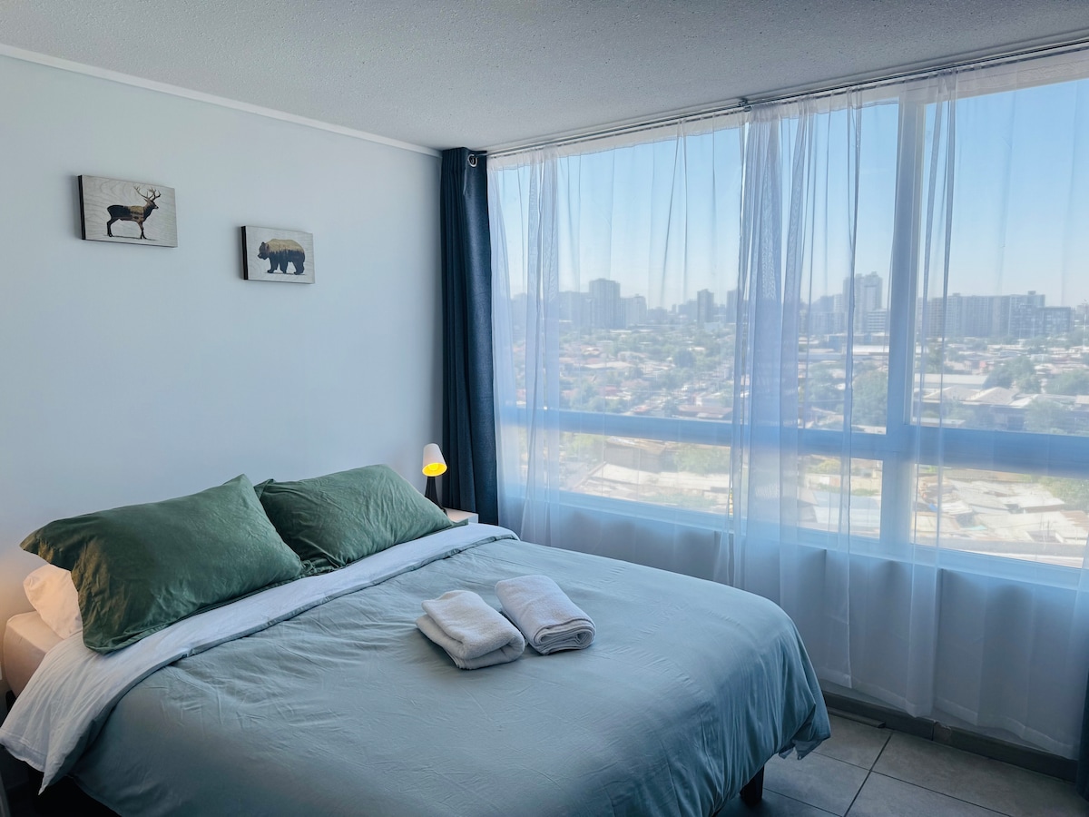 Nútímaleg íbúð með fallegu útsýni yfir fjallgarðinn 🤍 Staðsett á miðlægum og rólegum svæðum, einum strætisgötu frá Conchalí-neðanjarðarlestinni, 15 mínútum frá flugvellinum, 10 mínútum frá miðborg Santiago og innan við 5 mínútna göngufjarlægð frá Hipódromo Chile og Estadio Santa Laura. 1 svefnherbergi + svefnsófi í stofu Uppbúið eldhús Einkabaðherbergi Svalir með útsýni yfir fjallgarðinn Þráðlaust net og sjónvarp með öppum Fullbúið Nútímalegt, þægilegt og minimalískt Sundlaug, líkamsrækt, quincho, samvinna og viðburðarherbergi
