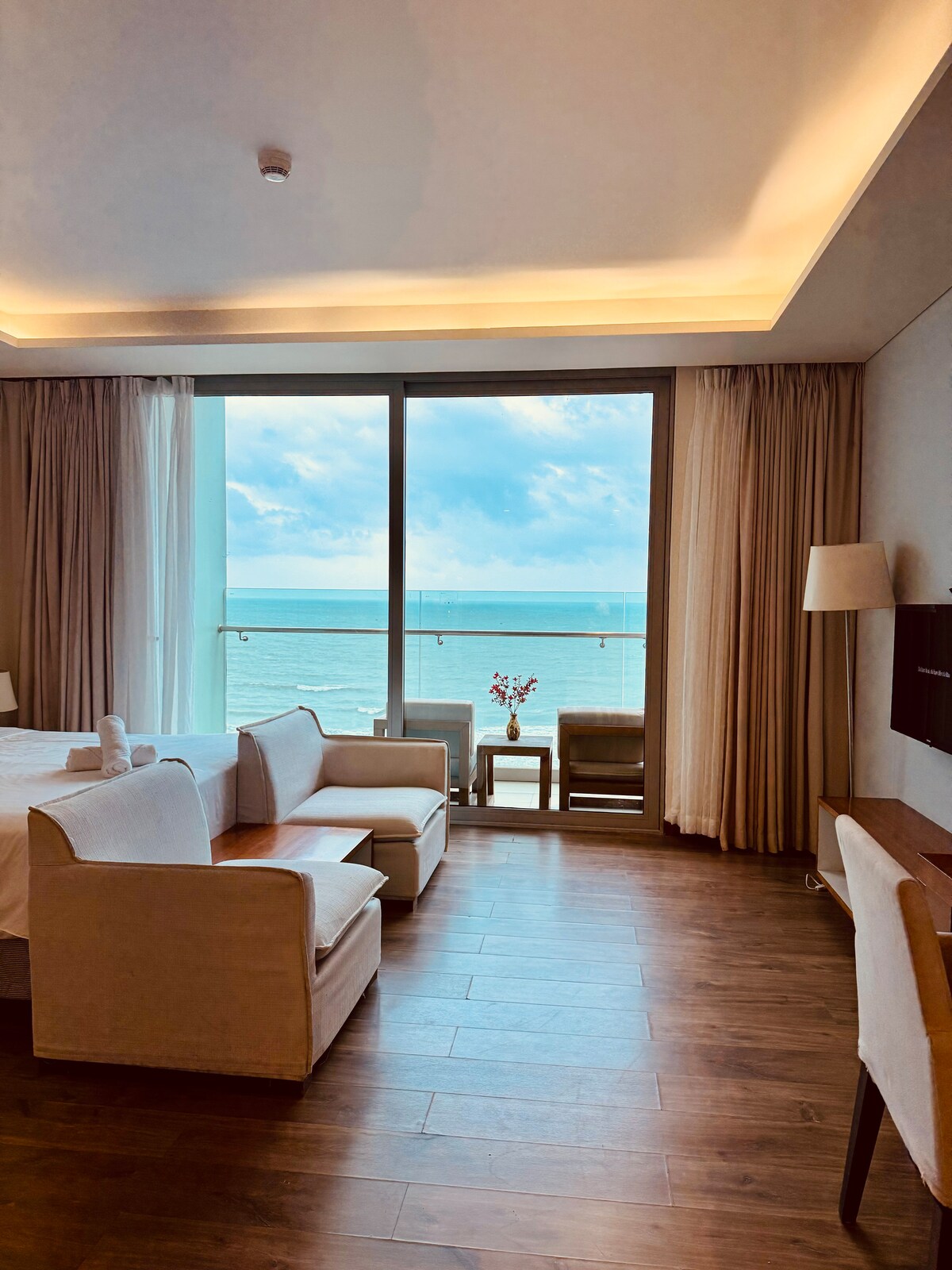Þessi glænýja stúdíóíbúð er staðsett við 200 Võ Nguyên Giáp í táknrænu A La Carte-byggingu og býður upp á stórkostlegt sjávarútsýni með einkasvölum - fullkomið til að njóta morgunkaffisins á meðan þú dást að víðáttumiklu bláa sjónum, mjúkum hvítum sandi og glæsilegum kókospálmum. Hún er staðsett við ströndina í Mỹ Khê og er tilvalinn afdrep fyrir pör og vini sem vilja slaka á eða skapandi fólk sem vinnur í fjarvinnu. Vaknaðu á hverjum morgni við stórkostlega sólarupprás og upplifðu sanna kjarna paradísar við ströndina