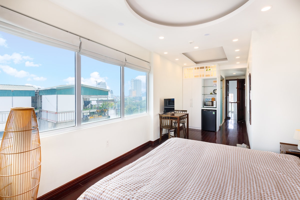 Kynnstu fjársjóði við aðalstræti í Hoan Kiem-héraði. Herbergið er staðsett nálægt gamla bænum og er baðað náttúrulegri birtu frá stórum glugga sem skapar notalegt andrúmsloft. Hljóð söluaðila og ilms frá iðandi götunum auka á líflegan sjarma þess. -7m ganga að gamla hverfinu, -10 m frá Hanoi-lestarstöðinni -20 mínútur á næturmarkaðinn. -Lyfta -Frí þvottavél og þurrkari -Frægur veitingastaður og kaffihús í nágrenninu -Fullbúið eldhús -Netflix - Sim-kort til sölu