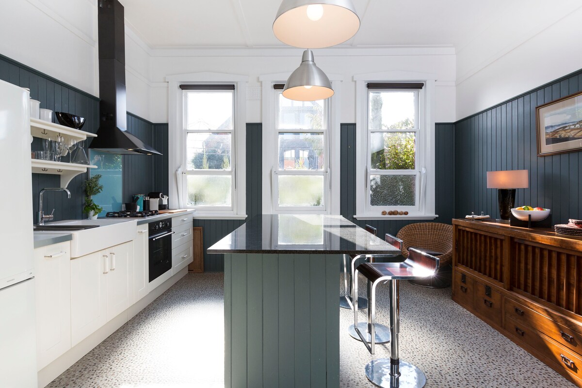 Former Church Hall & dance studio now a private luxury house near North Hobart’s Restaurant strip. The Sunday School built 1928 is spacious with an open floor plan for dining &living area, well equipped kitchen, granite bench & outdoor courtyard. Enjoy the ambience of a renovation respecting the building's heritage. Great heating, Wifi, books, games, art, large deep bath, walk-in shower, powder-room /laundry, lamps, dimmable lights, please read the reviews.
