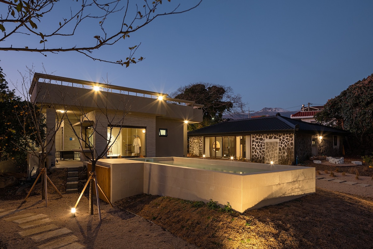 Halló ") Þetta er rými sem endurtengir rýmið sem afi minn skildi eftir fyrir föður minn og föður minn skildi einnig eftir fyrir mig með nútímalegri tilfinningu. Gistingin samanstendur af innra húsi sem fjórir einstaklingar geta notað og ytra húsi sem tveir geta notað. Laugin er kerfi sem getur haldið hitastigi yfir 33 gráðum á Celsíus í 24 klukkustundir, jafnvel á veturna. The garden plants cherry blossoms and tangerine trees, which symbolize Jeju, so you can also see Jeju in your room. Takk fyrir.
