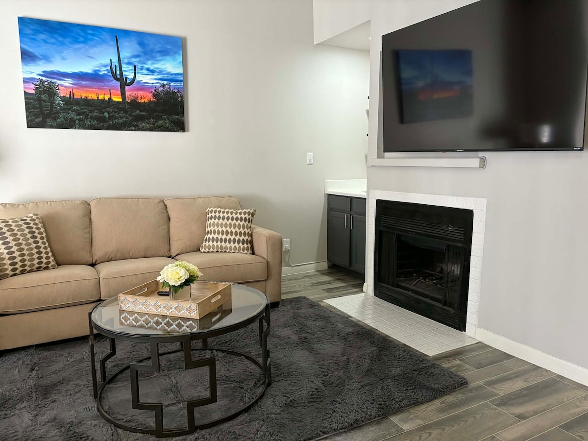 Meðfylgjandi einkastofu casita með aðskildum inngangi fyrir þægilegt aðgengi. Í Casita er eldhús með ísskáp, örbylgjuofni, Keurig (með úrvali af heitum drykkjum), nokkur eldunarbúnaður og áhöld. Slakaðu á í þægilegu elskhugasæti með osmansku sjónvarpi og snjallsjónvarpi. Nálægt aðgangi að hraðbrautum, Chicago Cub Stadium 10 mín., Sky Harbor Airport 20 mín. og Phoenix/Mesa Gateway Airport 30 mín.