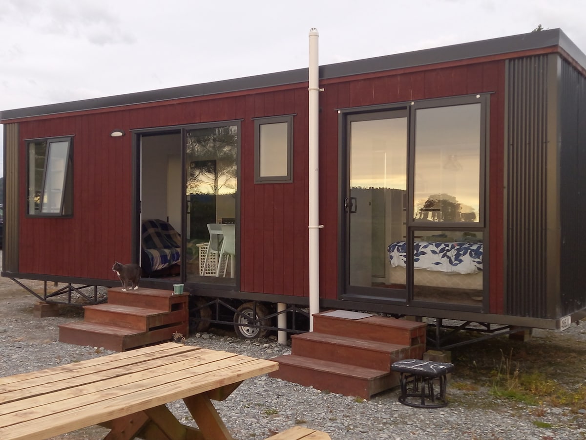 Modern one bdrm, King Bed cottage in gold-mining Stafford. 10-minute drive from Hokitika, cafes and shops in the countryside. King-size bed & king single in one spacious bedroom, there is a separate lounge/diner/kitchen. High-Pressure Gas Shower. The carport contains a washer and drier with a clothesline nearby. Fast Starlink internet. Smart TV apps and Sky. Cell coverage is 1-2 bars, but activate wifi-calling on your cellphones for clear calls. Check in 2 - 9 pm (no later please)