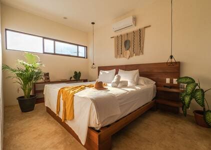 Hermoso departamento, muy espacioso y con unas vistas increíbles, ideal para sentarse en el balcón a ver la puesta de sol o divisar las estrellas. Ubicado en Casa Imox y a tan solo un par de minutos de la playa, el espacio es perfecto para una velada entre amigos o en pareja. En plena naturaleza, entre la playa y el manglar, destaca la elegancia y el estilo de Casa Imox. Nuestro host atenderá tus necesidades, con recomendaciones de tours, masajes,transportes, chefs particular...