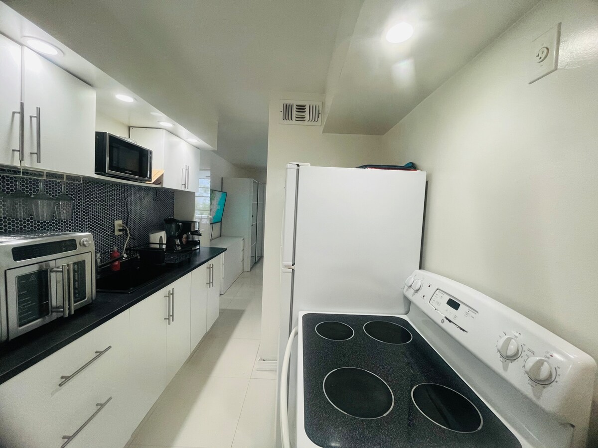 Nútímaleg og nýlega uppfærð íbúð með 2 stórum svefnherbergjum, 2 fullbúnum baðherbergjum og glæsilegu endurbyggðu eldhúsi og stofu. Staðsett sunnan við Miami Beach, í 5 mínútna göngufjarlægð frá ströndinni og í 35 mín akstursfjarlægð frá alþjóðaflugvellinum í Miami eða FLL-flugvellinum. Íbúðin er þægileg og rúmgóð, með 2 einkasvefnherbergjum og útdraganlegu rúmi í stofunni sem getur auðveldlega hýst tvo aukagesti! Sjónvarp í öllum herbergjum, ókeypis bílastæði, ókeypis þráðlaust net og fleira! BTR012307-07-2022 DBPR: CND2333763
