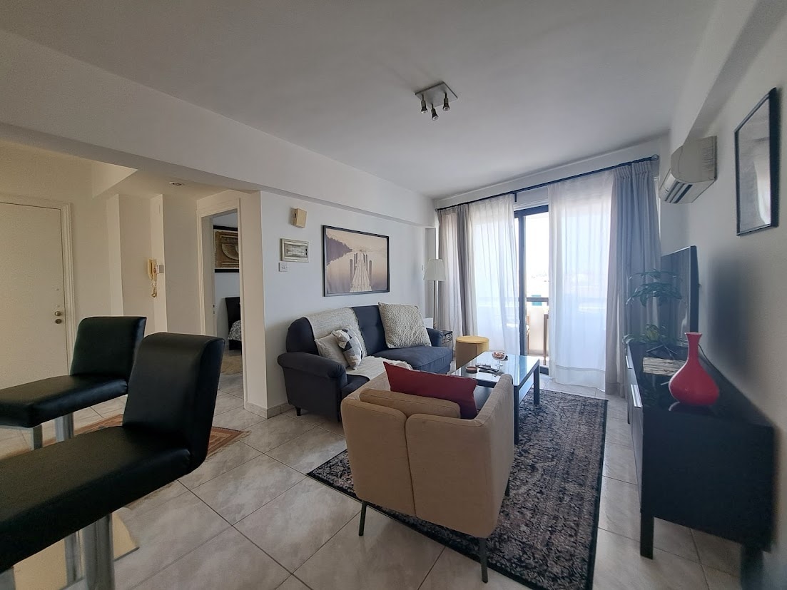 The apartment is located in a quiet and well maintained building, in a no through beautiful road, 5-10min walk from Finikoudes promenade and beach. Stór stofa með svefnsófa, eldhús, svefnherbergi, baðherbergi endurnýjað 24. nóvember, svalir með fjarlægu sjávarútsýni. Miðstöðin og aðalstrætisvagnastöðin eru í 5 mín göngufjarlægð svo að ef þú leigir ekki bíl verður þú samt í miðju alls. 200/30 Mb/s Netið. Zorbas bakarí og tilbúnar máltíðir eru hinum megin við götuna. Til að sjá fleiri íbúðir skaltu fara á notandalýsinguna okkar