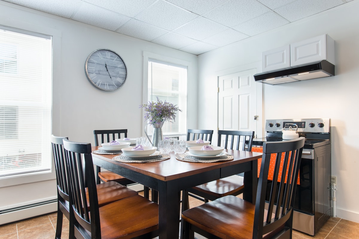 Slappaðu af í nútímalegu 1BR 1Bath íbúð í hjarta miðbæjar Amesbury, steinsnar frá bragðgóðum veitingastöðum og áhugaverðum stöðum á staðnum. Þessi heillandi vin er tilvalin fyrir tómstundagesti sem vilja skoða nálægar strendur og bæi en eru einnig nálægt sjúkrahúsum og framhaldsskólum, veitingum til ferðahjúkrunarfræðinga og fagfólks. ✔ Þægilegt King svefnherbergi ✔ Notaleg stofa ✔ Fullbúið eldhús ✔ Snjallsjónvarp ✔ vinnuaðstaða ✔ Þvottavél/þurrkari ✔ Háhraða þráðlaust net ✔ Ókeypis bílastæði Frekari upplýsingar hér að neðan!