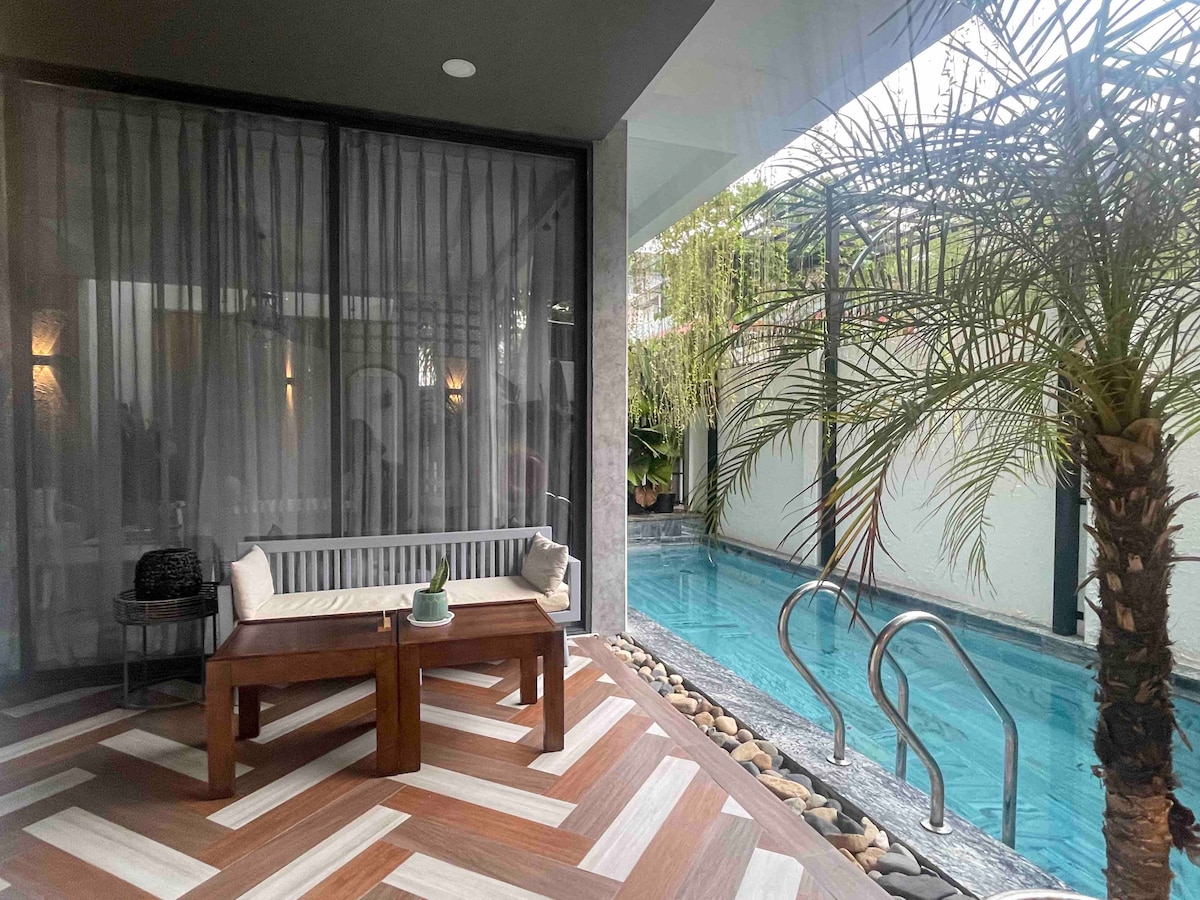 Chala House er okkar ástkæra krókur þar sem við nýtum okkur sveitalegan sjarma til að bjóða þér upp á heilandi og afslappandi griðastað í Nha Trang. ✨ Upplifunin þín: • 🌊 3 mínútna gönguleið (300 m): Aðeins nokkur þrep og þú getur fundið fyrir öldunum í hafinu. • 🏊 Smálaug: Einkaaðstaða til að slaka á og fyrir börnin til að skvettast í. • 🛌 2 svefnherbergi í sveitastíl: Frábært rúmföt og náttúrulegt lín fyrir djúpan svefn. • 🍖 Grillveisla utandyra: Notalegur garður sem er fullkominn fyrir sjávarréttakvöldverð með fjölskyldunni. Sem íbúar á staðnum deilum við gjarnan uppáhalds, földum veitingastöðum okkar með ykkur!