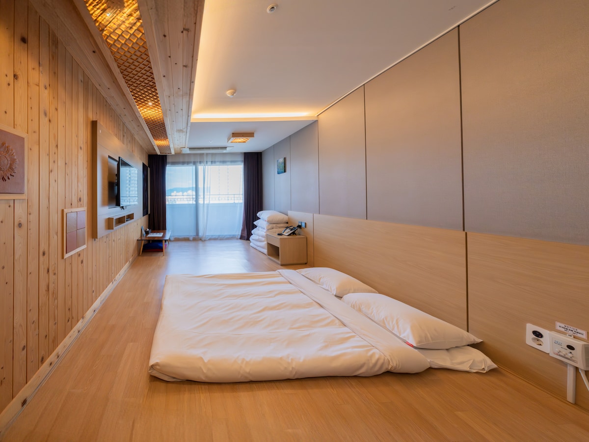 Halló, við erum Onda, að rannsaka og bjóða upp á ýmis hvíldarsvæði. Ég vona að allir sem gista hér eigi eftir að eiga notalega og ánægjulega stund. [Kynning á gistiaðstöðu] Það er staðsett í Gangwon-héraði og býður upp á sjávarútsýni, sérstaklega sjávarútsýni frá þaki 9. hæðar. [Tegund herbergis] Tegund eins herbergis (1 hjónarúm + 1 salerni)