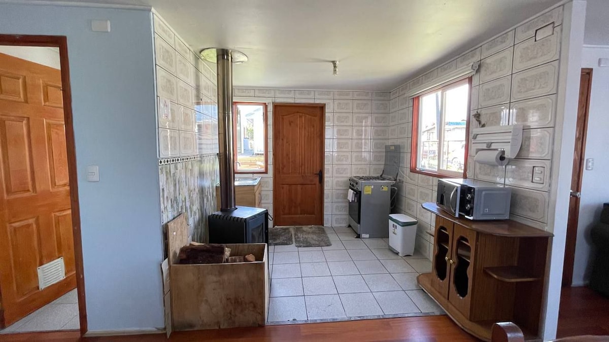 Notalegur kofi með fjölskylduandrúmslofti, rólegur og öruggur, tilvalinn til að hvílast og njóta Hornopirén. Það er staðsett aðeins 200 metra frá bryggjunni sem tengir Hornopirén við Caleta Gonzalo og er frábær valkostur fyrir þá sem ferðast á Carretera Austral. nálægt miðbænum, matvöruverslun, hefðbundnum markaði og við vatnið, allt í göngufæri fyrir aukin þægindi. Við erum einnig með grill