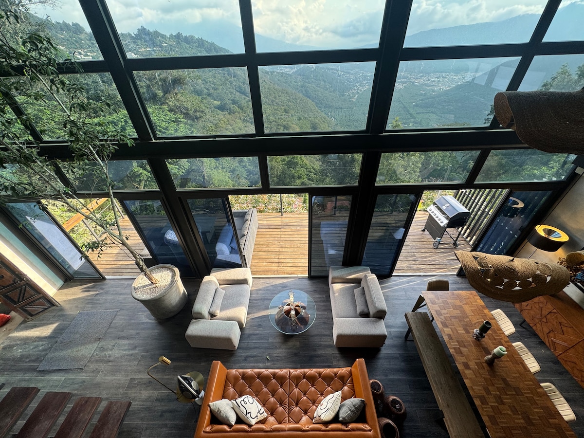 Verið velkomin í vistvæna þjónustu okkar í fjöllunum. Þú hefur útsýni og eignina og nýtur einnig góðs af greiðum aðgangi að öllum sjarma og þægindum Antigua Guatemala í nágrenninu. Njóttu útsýnisins yfir eldfjöllin Agua, Acatenango og Fuego, ósnortin fjöllin og paradís fuglaskoðara. ** Eignin okkar hentar best göngufólki, hjólreiðafólki, fuglafólki og sjálfstæðu fólki sem vill bara ró og næði og vistvæna gesti. Það er sveitalegt en þægilegt.**