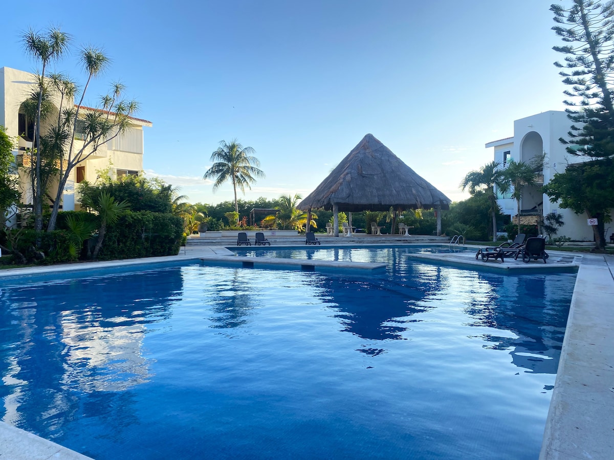 Precioso departamento equipado, muy cómodo y con alberca. Extraordinaria ubicación en la zona turística del centro de Cancún, en una calle tranquila y segura, a pocos pasos del Mercado 28 y de una avenida importante con acceso a camiones de zona hotelera para ir a la playa, por lo que es genial para movilizarse caminando o en transporte público... No necesitas rentar auto! Está cerca de todo! Restaurantes, bancos, lavandería, gimnasio, gasolinera, Oxxo, Walmart y el famoso Mercado 28!