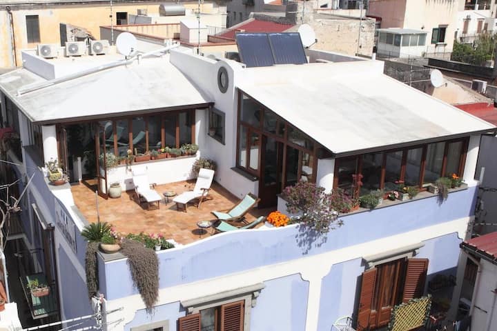 Halló, Ég heiti Elena Villini og útleigueignin mín og gistiheimili eru nefnd eftir móður minni, suður-afrískum gestgjafa sem kom í frí til Lipari fyrir 48 árum og ég féll fyrir föður mínum „Salvatore“, skipstjóra á ferðamannabát, þar sem við höfum gist.
