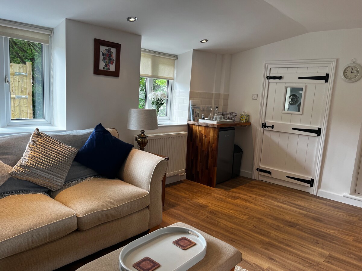 Viðbyggingin í Coopers Farmhouse. Þessi sjálfstæða eining er uppi, fyrir ofan bílskúrinn okkar, með svölum með útsýni yfir glæsilega akra og garð. Þú kemur inn í stofuna með litlu eldhúsi, sjónvarpi og setustofu og svefnsófa (king). Í gegnum bogagöng (engar dyr) og í svefnherberginu geta tvíbreið rúm rennt saman og verið gerð að yndislegu stóru tvöföldu ef þess er þörf. Að lokum, ensuite sturtuklefi. Lítill léttur morgunverður verður skilinn eftir fyrir dvöl þína fyrsta í fyrramálið.