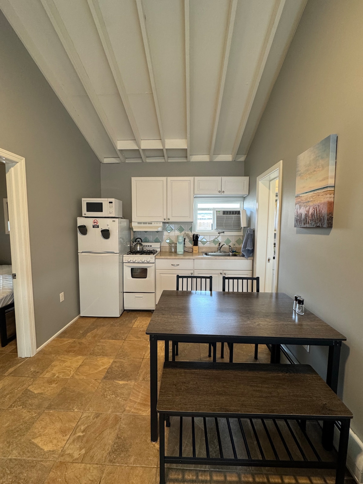 Slappaðu af í þessu einstaka og friðsæla fríi. Krúttlegur, notalegur bústaður. Bústaðurinn okkar er með margar uppfærslur eins og nýja glugga, gólf og baðherbergi. Smekklega skreytt til að endurspegla ást eigenda á blómum og ströndinni! Nýtt snjallsjónvarp með Alexu til að horfa á uppáhaldsþættina þína á þráðlausu neti. 2 strandmerki fylgja. Göngufæri við stöðuvatn og strönd. 1 svefnherbergi með Queen-rúmi Ókeypis bílastæði við götuna. Fallegir garðar sem þú getur notið og nóg af svæðum til að sitja og slaka á úti!