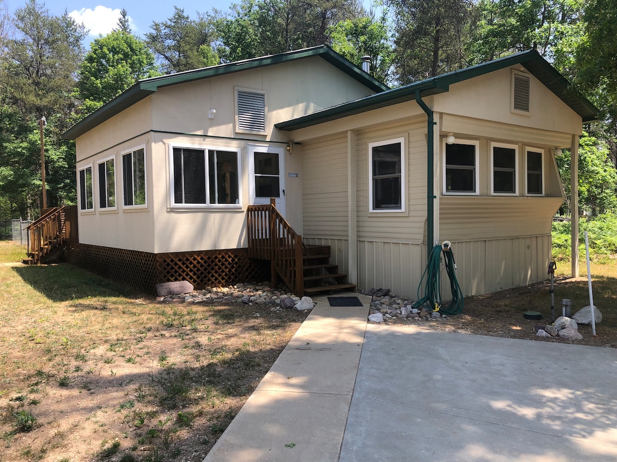 Við erum nú með ÞRÁÐLAUST NET! Þessi kofi hefur verið endurbyggður að fullu og ef þú ert nýr gestur eða gestur sem kemur aftur teljum við að þú munir falla fyrir honum! Við höfum bætt við svefnherbergi og stærra baðherbergi án þess að missa sjarmann sem allir fyrri gestir okkar voru hrifnir af! Ef þú elskar útivist skaltu vera hér!. Stígðu út um útidyrnar inn í hinn fallega Manistee-þjóðskóg. Á hverju tímabili er hægt að njóta friðsæls skógarins!