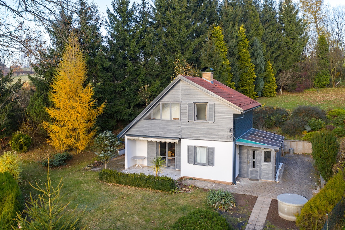 Come enjoy this comfortable, fully renovated 2-bedroom, 1-bath quiet getaway. Whether you want to relax indoors or experience the peace and quiet in the spacious fenced-in gardens, I'm sure you will enjoy your stay in the quaint Czech village. Put the stresses of life behind you and be happy.