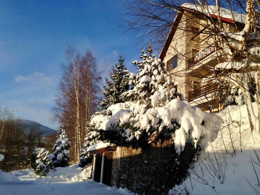 Gistingin er á lofthæð í fjölskylduhúsi. Þetta eru 2 aðskilin svefnherbergi með fjórum rúmum (samtals 8 rúm), 2 baðherbergjum og 1 sér, vel búnu eldhúsi með borðstofu og litlum sófa. Bæði herbergin eru með sameiginlegum svölum með mögnuðu útsýni. Það er hægt að nota garðinn með leiktækjum og sundlaug. Þráðlaust net, bílastæði innifalið. Húsið er staðsett á hæð í skógi í útjaðri borgarinnar í nokkurra mínútna göngufjarlægð frá miðbænum. Skíðabrekkurnar eru í nokkurra mínútna akstursfjarlægð. Hentar einni stærri eða tveimur litlum fjölskyldum.