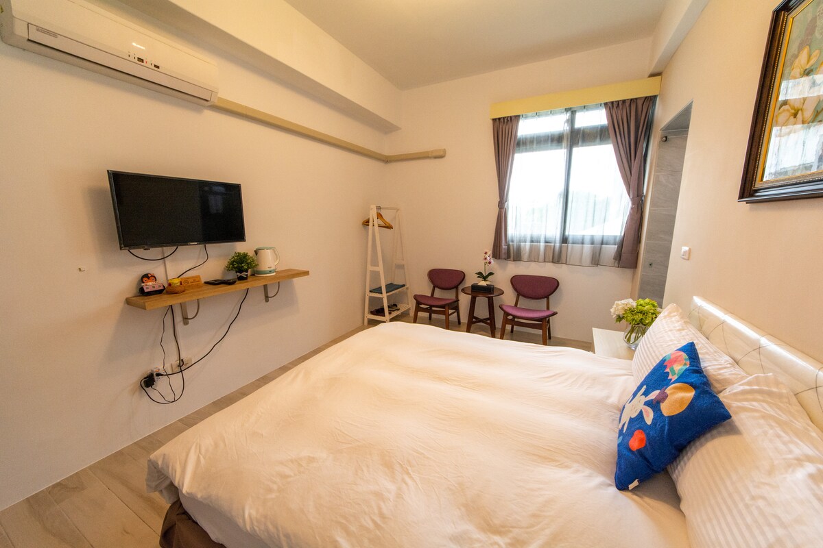 Located next to the train station, nearing the Hualian local food area •Decorated with the rare red cypress which releases " phytoncid " naturally that can soothe your nerves. •Supply the shower cream, shampoo to supplement your body best nutrient. •Air conditioner of Panasonic and Japanese heat pump water heater •We introduced the best audio-visual media:50 inch JVC television with thousands of both domestic and foreign high definition freefilm. •King-size double bed.