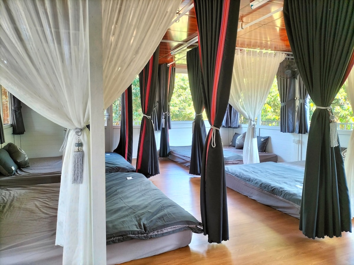 The DORMITORY room type (2pax) is a shared room type consisting of 1 lower floor with 2 single beds. Guests who book the room only use the booked single bed and share the room space, as well as the common space with other guests. In addition, the room does not have a private bathroom, guests must use the bathroom outside the room and must also share this bathroom with other guests.