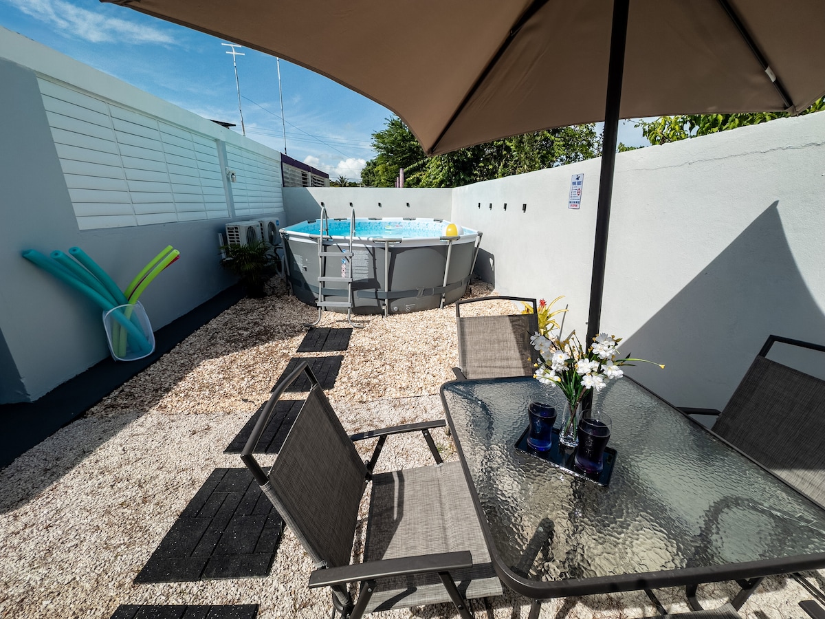 Located in the beautiful town of Punta Santiago, Humacao. This beach home is fully remodeled and furnished with air conditioning in the entire house, fully equipped kitchen, WIFI, washer & dryer inside the unit, private pool and BBQ area and much more! At only a 45 minute drive from the San Juan airport, historic Old San Juan and a 25 minute drive from El Yunque Rainforest, the ferry to Culebra and Vieques island and many more water attractions. This house is perfect for family vacations!