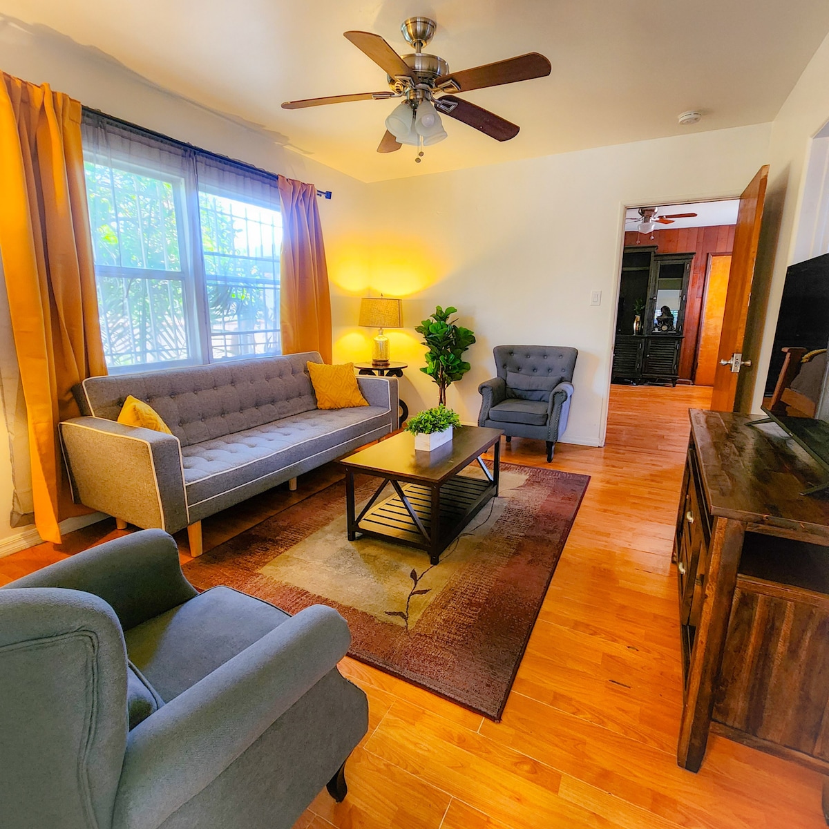 Rúmgóð, hrein, róleg, notaleg 6 rúm*+2 þægilegir sófar. 5 mínútna göngufjarlægð frá markaði/veitingastöðum, miðlæg staðsetning fyrir ferðina þína (Kia, SoFi, Crypto, Disney, Universal, Hollywood, Knotts, LA/OC) Ókeypis bílastæði á staðnum, mikið bílastæði í lok götunnar! Friðsælt, öruggt og rólegt svæði Annar salerni og sturtu að kostnaðarlausu** Frábær loftkæling/hiti, upphitað baðherbergi, Jet-tub, vel búið eldhús, einkaðstaða fyrir þvottavél/þurrkara. 15 mín. í LAX, strendur, Forum, SoFi, Crypto, Downtown LA, Disney *1 Queen, 1 Double, 2 Rollaways, 2 Air