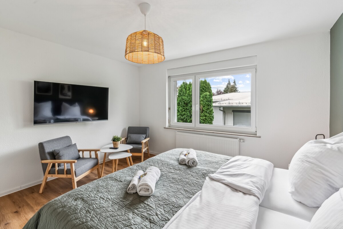 Njóttu dvalarinnar í Aalen í nútímalegri, fullbúinni einkaíbúð. Gistingin er mjög nálægt miðbæ Aalen. Það eru verslunarmöguleikar o.s.frv. í næsta nágrenni. Íbúðin er með 2 rúm (160 cm), rúmgott baðherbergi, nútímalegt eldhús og stóra verönd. Innritun fer fram með kóða (lyklaboxi) svo að komutíminn getur verið mislangur eftir þínum óskum. Ókeypis bílastæði er í boði á staðnum.